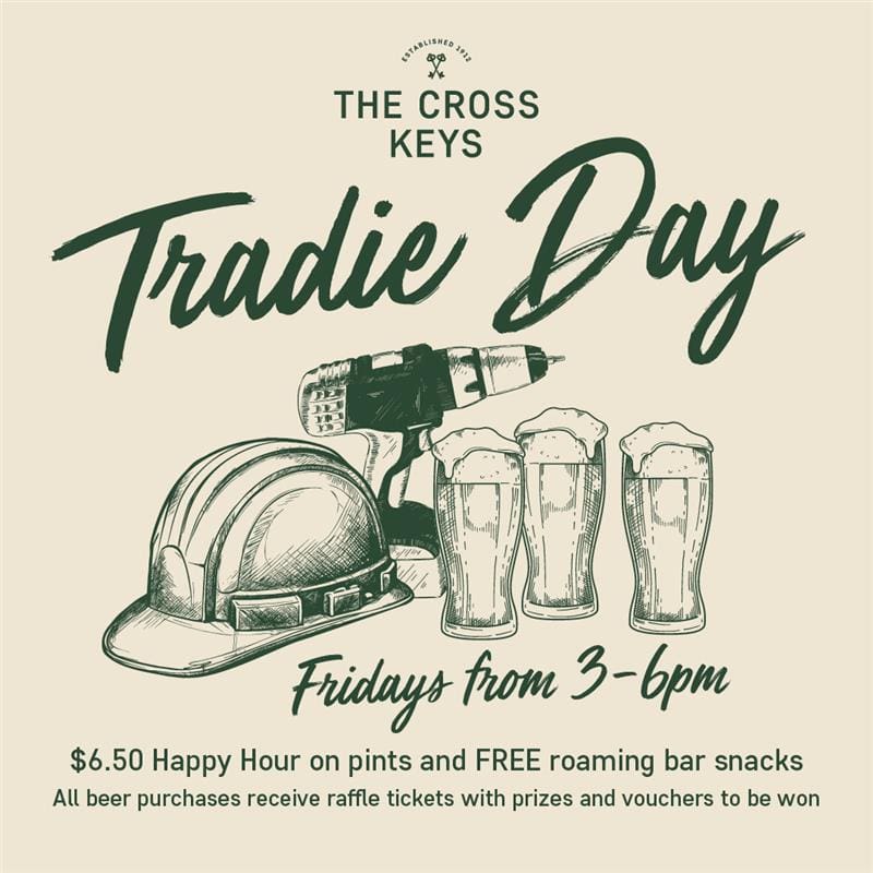 Tools down! Every Friday afternoon, head to The Cross Keys for our Tradie Day Happy Hour.